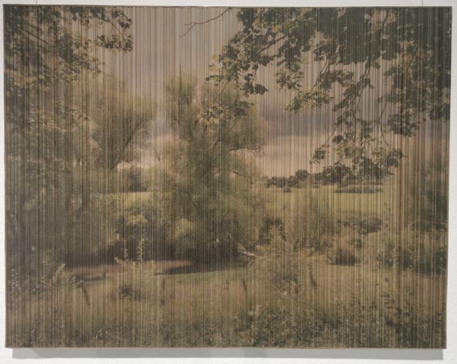 Her images, fragmented and then reworked with colored pencil and pastel, blur the boundaries between painting and photography and reinvent temporality.